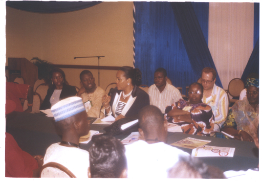 Ambassador Temidayo Israel-Abdulai sitting next to Mr Frank Nweke Junior, Nigerian Minister of Information at the Young General Assembly Session in 2004